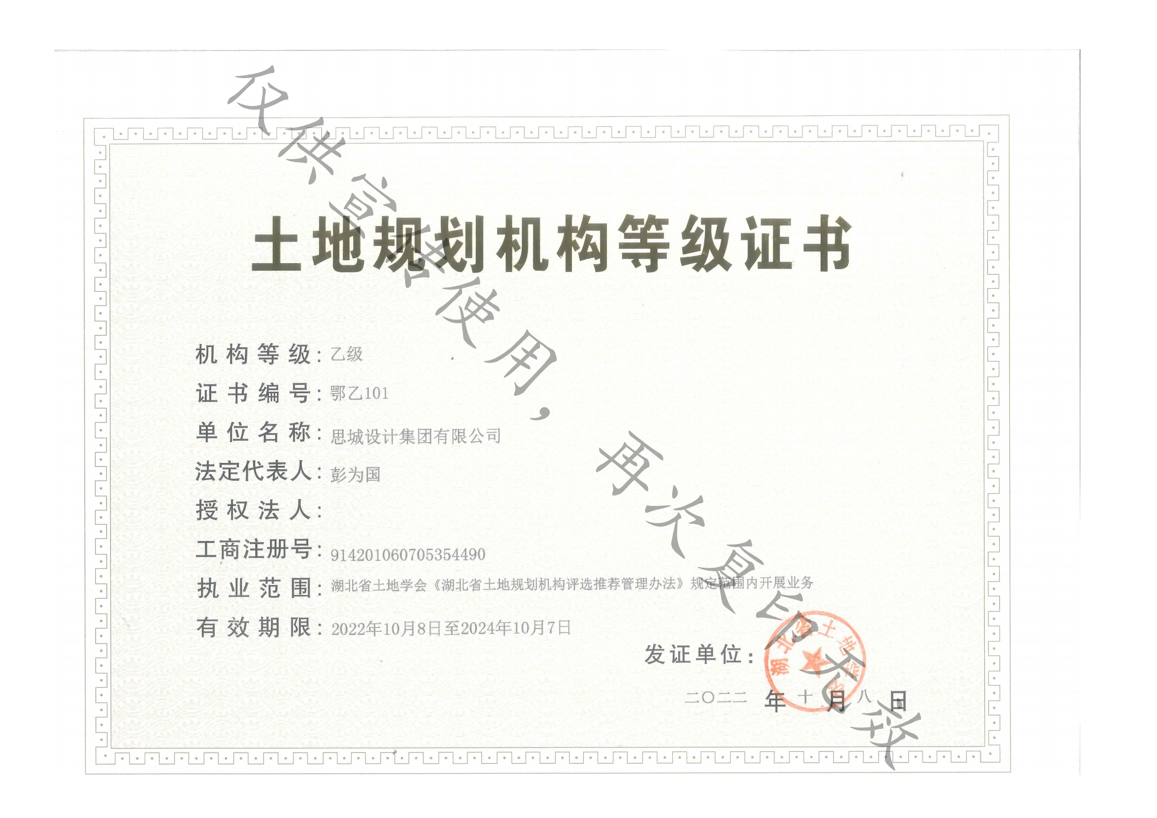 • 城鄉規劃編制資質證書