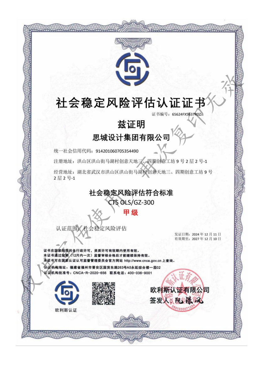 • 社會穩定風險評估認證證書
